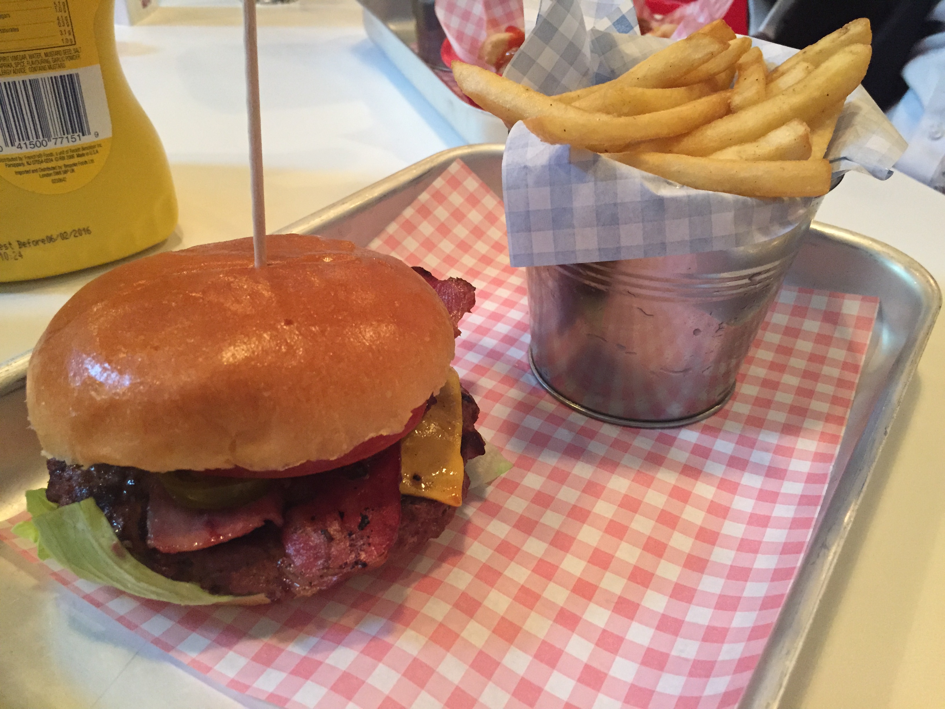 It has an American Diner type feel which you would compare to a Tinsletown / Als Diner. And I have to say it is money well spent, the decor definitely looks the part. The branding is consistent throughout the restaurant and I particularly liked the sewn on badge on the seating area. There is also a big speaker and TV system set up which can often get quite loud which we will discuss later on.